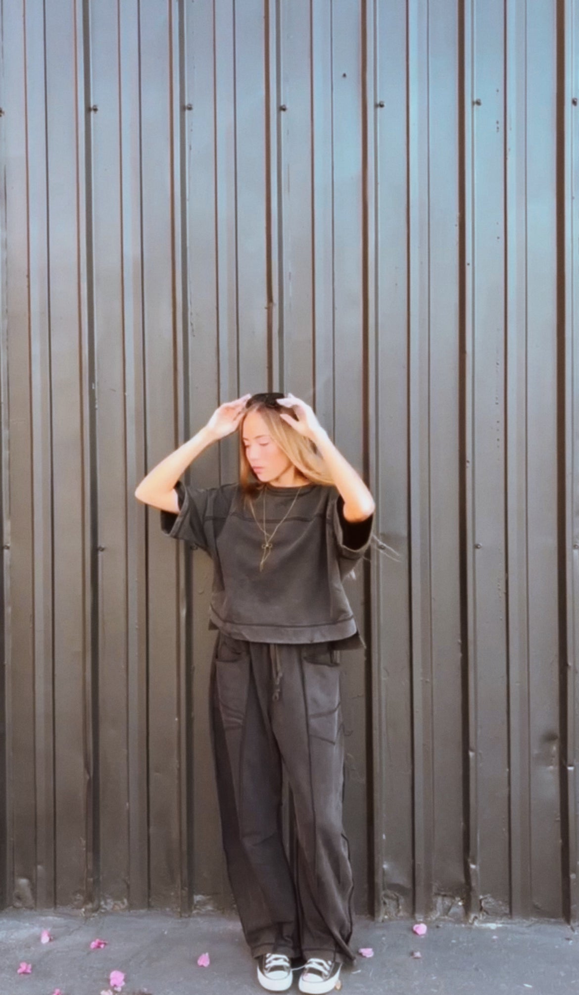 Elevate casualwear with this mineral washed two-piece set, featuring a relaxed boxy top and barrel pants with exposed seam detail. The elastic drawstring waist and oversized cargo pockets bring comfort and function, while the washed finish adds a lived-in, ready to wear edge. A versatile lounge-to-street look that is effortless for layering or standout styling.
